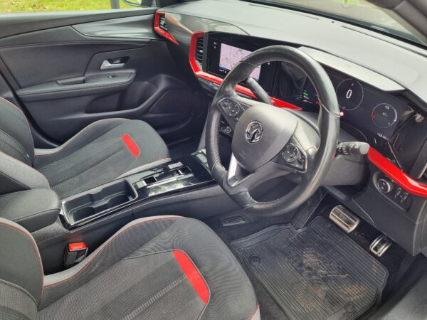 10in Multimedia Navi Pro with Live Navigation, 11kW Three-Phase On-Board Charger, 18in Alloy Wheels – Bi-Colour with Red Accents, 2 Rear USB Connections, Adaptive Cruise Control, Air Recirculation System, Airbags – Deactivation Switch For Front Passengers and Side Impact, Alloy Sport Pedals, Atlantis Black Trim Inserts on Front Doors, Automatic Emergency City Braking, Automatic Lighting Control with Tunnel Detection, Automatically Dimming Anti-Dazzle Rear-View Mirror, Black Front and Rear Skid Plates, Black Griffin Logo and Vizor Frame, Black Headliner, Bumpers – Body Colour Front and Rear, CBC – Cornering Brake Control, Cabin Particulate Filter, Central Front Courtesy Light, Central Rear Courtesy Light, Centre Console with Two Cup Holders in the Front and One in the Rear, Chrome Effect Interior Door Handles, Dark-Tinted Rear Side and Tailgate Windows, Dipping Rear-View Mirror, Display Instrument – Driver Info Enhanced – 12in Full Cluster – Multi Colour Graphic, Door Handles – Body Coloured, Door Mirrors – Electrically Adjustable – Folding – Heated, Drag Torque Control, Drive Mode Selector – Sport-Normal-Eco, Driver Drowsiness System, Drivers and Front Passengers Sunvisor Incorporating Vanity Mirrors with Covers, EBD – Electronic Brakeforce Distribution, ESP – Electronic Stability Programme, Electronic Climate Control, Fade Up-Fade Down Courtesy Lights, Forward Collision Alert, Four Adjustable Facia Vents, Four Load Restraint Lashing Eyes, Four-Speed Fan, Front Camera System, Front Map Reading Lights, Front USB Connection, Front and Rear Parking Distance Sensors, Heated Front Seats, High Beam Assist, Illuminated Controls, Illuminated Load Area, Inertia-Reel Lap and Diagonal Seatbelts, Instrument Panel Bar – Light Gravel, Integrated Black Tailgate Spoiler, Interior Courtesy Lights, Interior Tailgate Handle, Intermittent Rear Window Wash-Wipe, Key Left in Ignition Audible Warning, Keyless Entry – Keyless Start, LED Front Fog Lights, LED Headlights, LED Side Repeat Indicators, LPA – Lane Positioning Assist, Lane Keep Assist with Lane Departure Warning, Luggage Compartment Lighting, Manual Headlight Beam Levelling, Mode 3 – 3-Phase 22kW Cable, Panoramic Rear View Camera, Rear Fog Lights, Remote Control Ultrasonic Security Alarm System, Reversing Lights, Roof – Black, Seatbelt Unfastened Audible Warning and Warning Light, Sensor – Traffic Sign Recognition, Side Blind Spot Alert, Side Window Demist Vents, Straight Line Stability Control, Three Height Adjustable Rear Seat Head Restraints, Traction Control, Twin Gas Assisted Tailgate Struts, Two Speed Windscreen Wipers with Variable Intermittent Wipe, Tyre Pressure Deflation Detection System, Vauxhall Connect, Windscreen Demist Vents